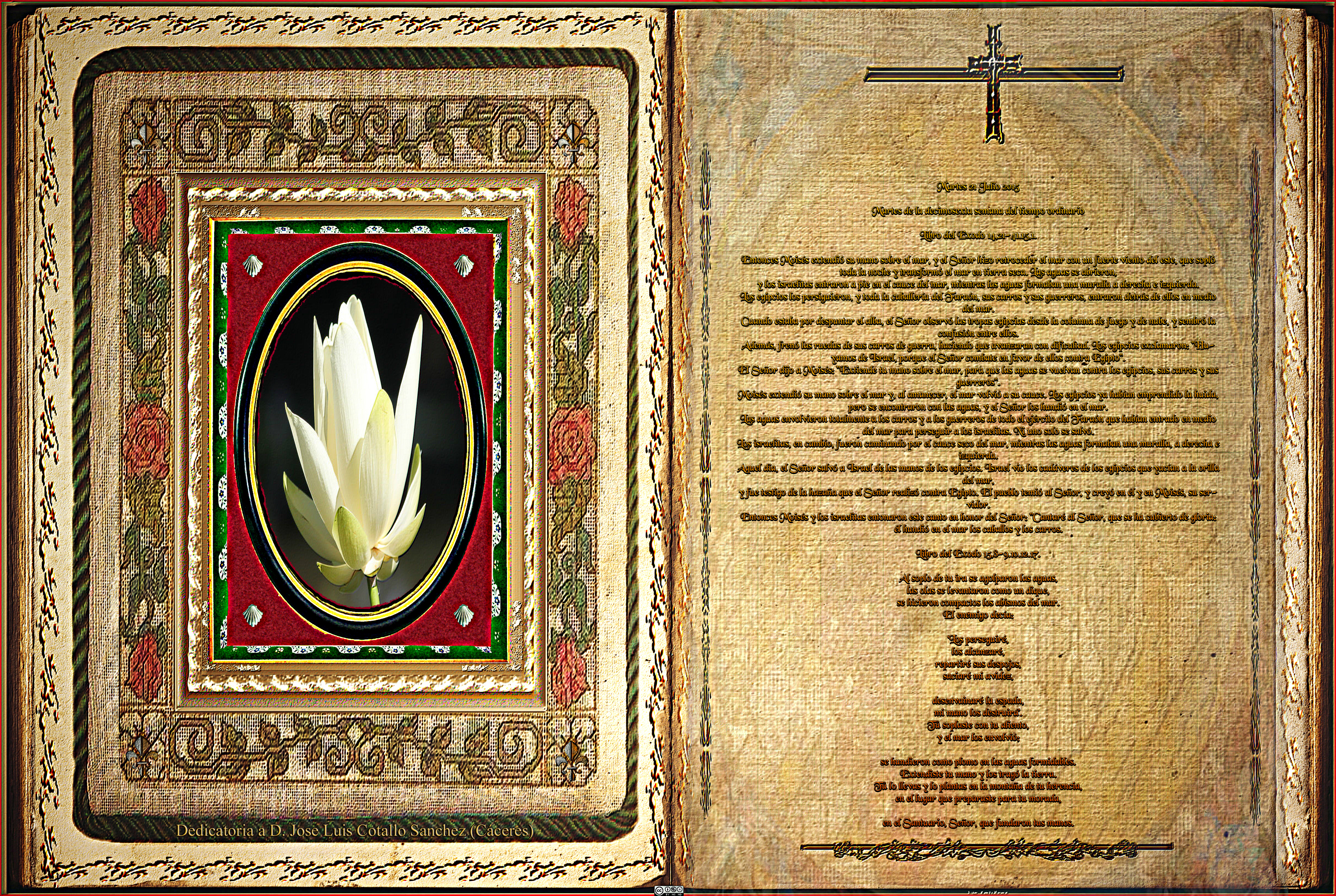 Entonces Moisés y los israelitas entonaron este canto en honor del Señor: «Cantaré al Señor, que se ha cubierto de gloria: él hundió en el mar los caballos y los carros.